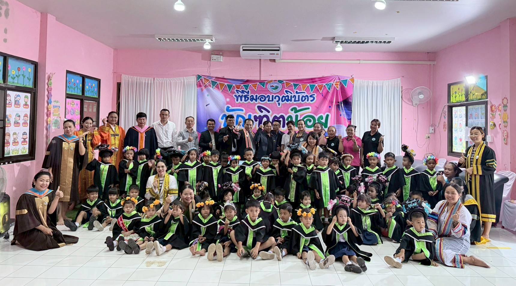 ขอแสดงความยินดีกับหนู ๆ บัณฑิตน้อยทุกคนที่เป็นความภูมิใจของครอบครัวและชุมชนของเรา พิธีในวันนี้ถือเป็นจุดเริ่มต้นและก้าวแรกที่สำคัญในการสร้างรากฐานด้านการศึกษา