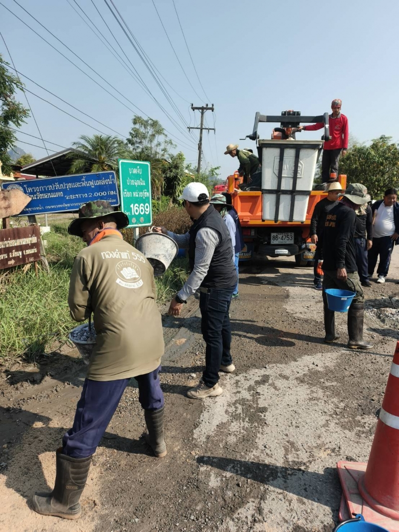 ดำเนินการซ่อมแซมและปรับปรุงผิวจราจรที่ชำรุด เส้นทางจากบ้านหนองหญ้าปล้องเชื่อมต่อไปยังบ้านวังขอนแดง เพื่อความสะดวกและความปลอดภัยในการสัญจรของประชาชนในพื้นที่