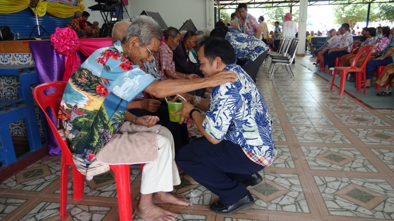 พิธีรดน้ำดำหัว: เพื่อขอขมาและขอพรจากผู้สูงอายุในตำบลดงลาน เสริมสร้างความเป็นสิริมงคล และแสดงออกถึงความกตัญญูกตเวที